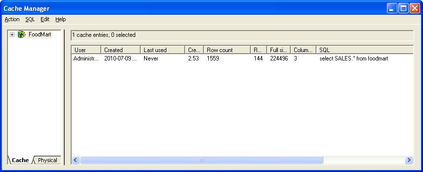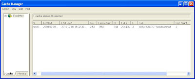 View the results of the report. Since the report has columns that are part of the cache, the results should have been obtained from the cache. To verify, open the Cache management dialog again and look at the last used timestamp of the cache that we have created. The timestamp should have been updated with the time when the new report was viewed.